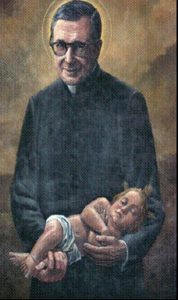 En todos los cuadros reproducidos el fundador aparece siempre, y sin excepción, con capa pluvial. ¿No quedamos en que predicó la santidad para los laicos, padres y madres de familia, con hijos, que repelía las figuras relamidas, de pasta flora, representaciones pías; que se autocalificaba como anticlerical, y predicaba el ocultarse y desaparecer que sólo Jesús se luzca? O no era del todo cierto –véase el tríptico – o los suyos no entendieron nada de su mensaje –véanse las otras–.